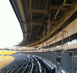 Universal Scaffold Systems can design your scaffold project to withstand the uncertain forces of wind and weather. Products ranging from; weather enclosure frames,