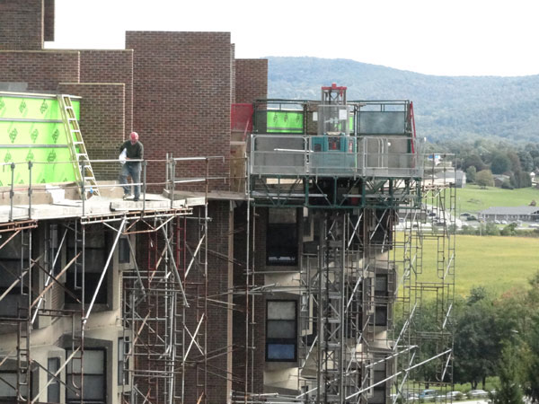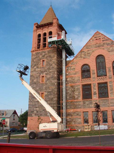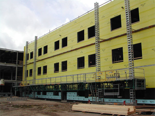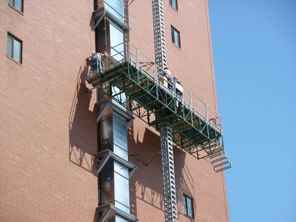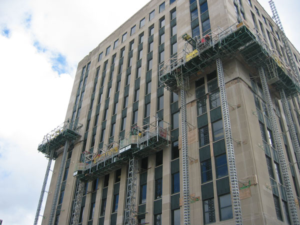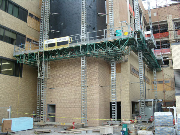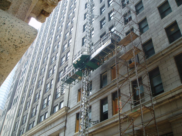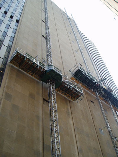 Universal Scaffold Systems rents Hydro-Mobile mast climber systems to a variety of contractors including the masonry, restoration, E.I.F.S., window, roofing, inspection, cleaning, plumbing, electrical and demolition industries.